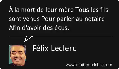 À la mort de leur mère Tous les fils sont venus Pour parler au notaire Afin d'avoir des écus.