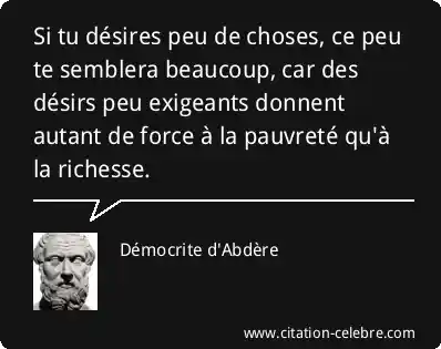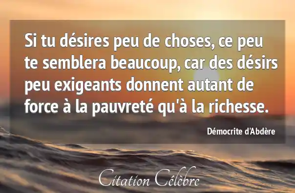 Si tu désires peu de choses, ce peu te semblera beaucoup, car des désirs peu exigeants donnent autant de force à la pauvreté qu'à la richesse.