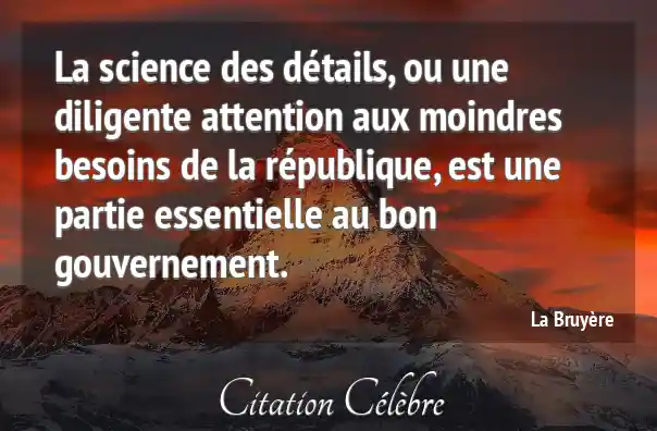 La science des détails, ou une diligente attention aux moindres besoins de la république, est une partie essentielle au bon gouvernement.