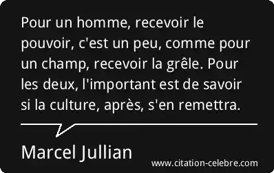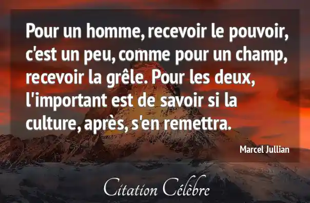 Pour un homme, recevoir le pouvoir, c'est un peu, comme pour un champ, recevoir la grêle. Pour les deux, l'important est de savoir si la culture, après, s'en remettra.