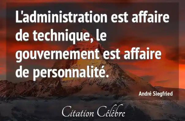 L'administration est affaire de technique, le gouvernement est affaire de personnalité.
