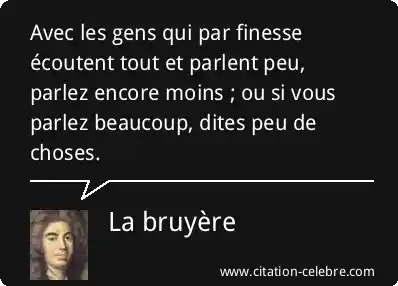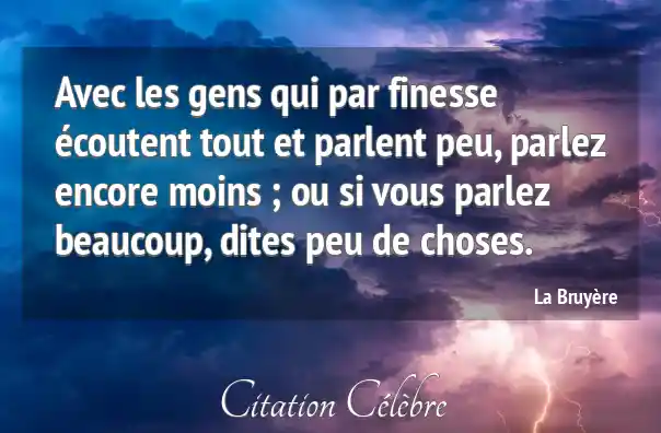 Avec les gens qui par finesse écoutent tout et parlent peu, parlez encore moins ; ou si vous parlez beaucoup, dites peu de choses.