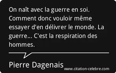 On naît avec la guerre en soi. Comment donc vouloir même essayer d'en délivrer le monde. La guerre... C'est la respiration des hommes.