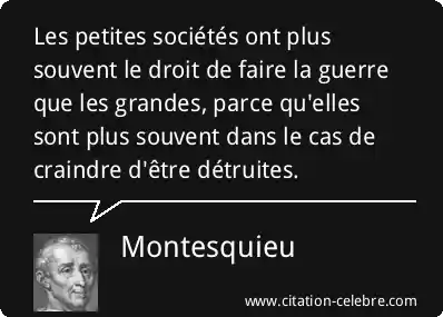 Les petites sociétés ont plus souvent le droit de faire la guerre que les grandes, parce qu'elles sont plus souvent dans le cas de craindre d'être détruites.