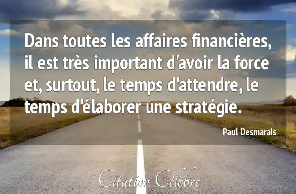 Dans toutes les affaires financières, il est très important d'avoir la force et, surtout, le temps d'attendre, le temps d'élaborer une stratégie.