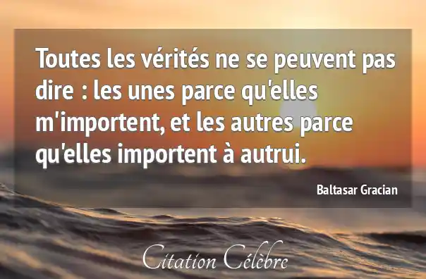 Toutes les vérités ne se peuvent pas dire : les unes parce qu'elles m'importent, et les autres parce qu'elles importent à autrui.