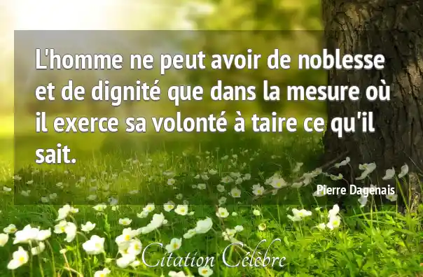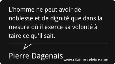 L'homme ne peut avoir de noblesse et de dignité que dans la mesure où il exerce sa volonté à taire ce qu'il sait.