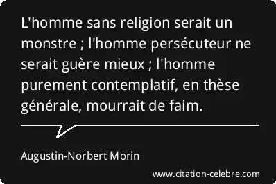 L'homme sans religion serait un monstre ; l'homme persécuteur ne serait guère mieux ; l'homme purement contemplatif, en thèse générale, mourrait de faim.