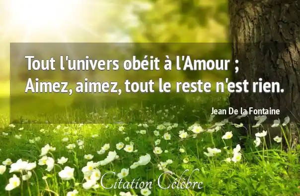 Tout l'univers obéit à l'Amour ; Aimez, aimez, tout le reste n'est rien.