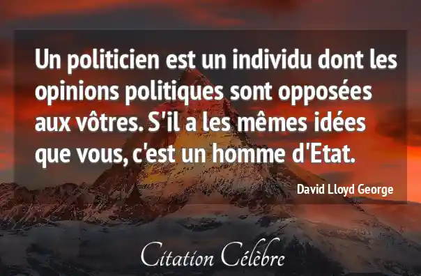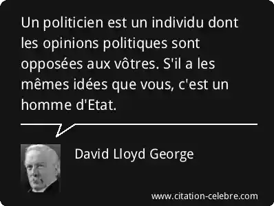 Un politicien est un individu dont les opinions politiques sont opposées aux vôtres. S'il a les mêmes idées que vous, c'est un homme d'Etat.
