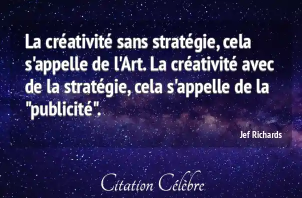 Citation Jef Richards art : La créativité sans stratégie, cela s'appelle de l'Art. La créativité...