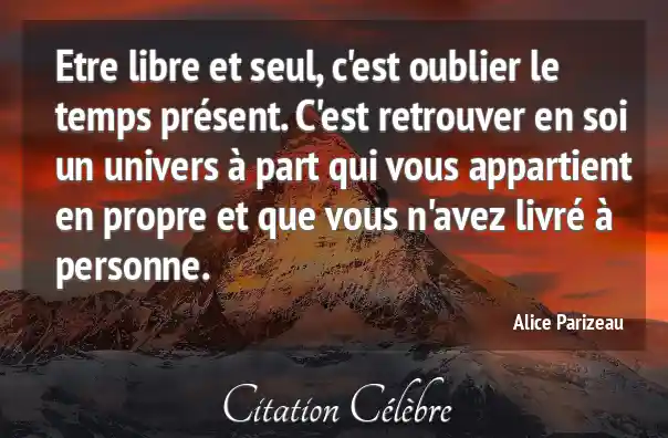 Etre libre et seul, c'est oublier le temps présent. C'est retrouver en soi un univers à part qui vous appartient en propre et que vous n'avez livré à personne.