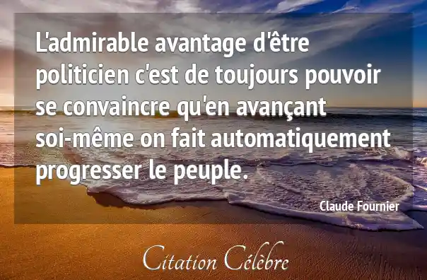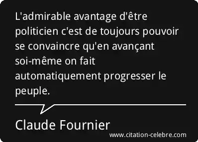 L'admirable avantage d'être politicien c'est de toujours pouvoir se convaincre qu'en avançant soi-même on fait automatiquement progresser le peuple.