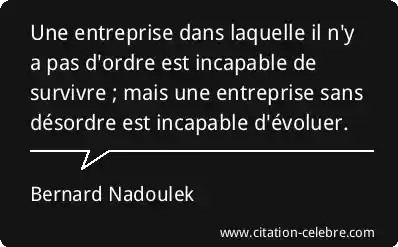 Une entreprise dans laquelle il n'y a pas d'ordre est incapable de survivre ; mais une entreprise sans désordre est incapable d'évoluer.
