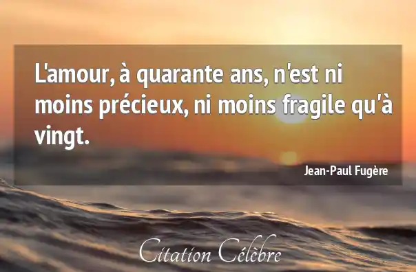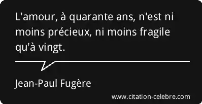 L'amour, à quarante ans, n'est ni moins précieux, ni moins fragile qu'à vingt.