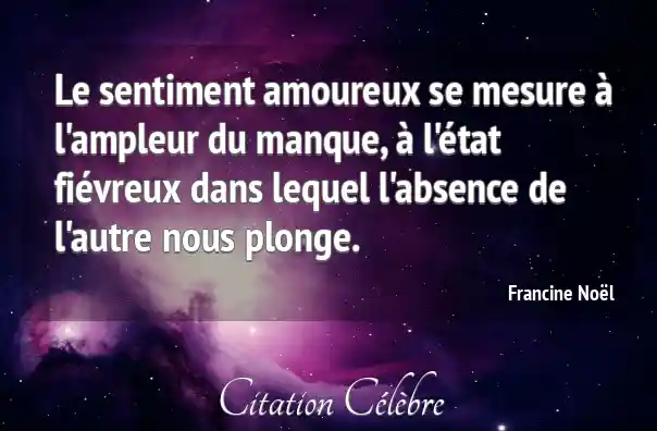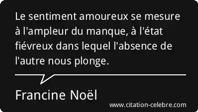 Le sentiment amoureux se mesure à l'ampleur du manque, à l'état fiévreux dans lequel l'absence de l'autre nous plonge.