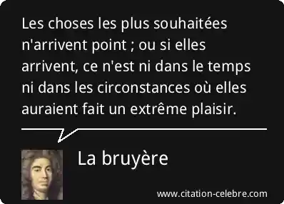 Les choses les plus souhaitées n'arrivent point ; ou si elles arrivent, ce n'est ni dans le temps ni dans les circonstances où elles auraient fait un extrême plaisir.