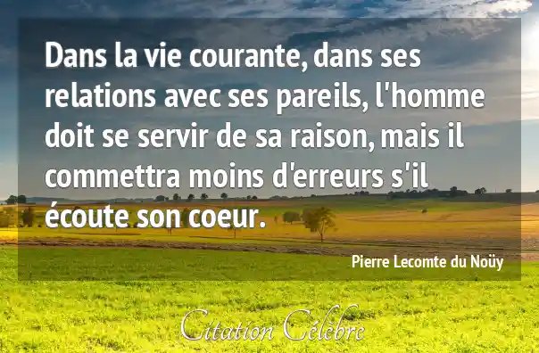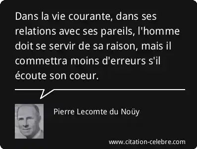 Dans la vie courante, dans ses relations avec ses pareils, l'homme doit se servir de sa raison, mais il commettra moins d'erreurs s'il écoute son coeur.