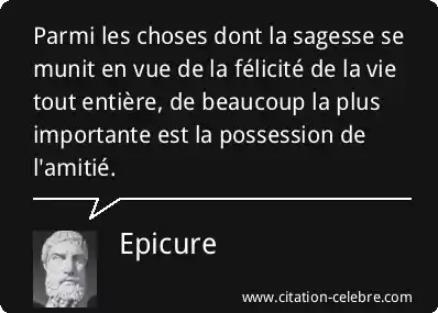 Parmi les choses dont la sagesse se munit en vue de la félicité de la vie tout entière, de beaucoup la plus importante est la possession de l'amitié.
