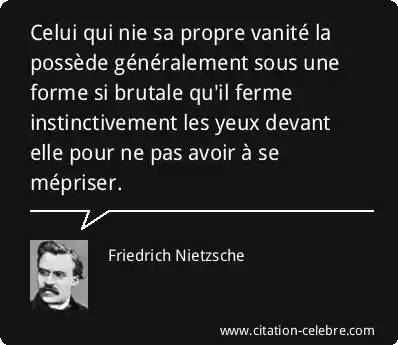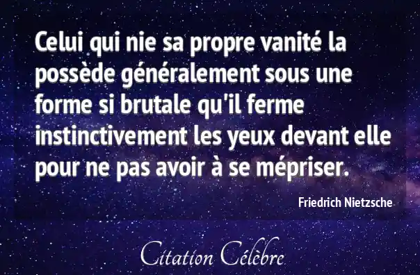 Celui qui nie sa propre vanité la possède généralement sous une forme si brutale qu'il ferme instinctivement les yeux devant elle pour ne pas avoir à se mépriser.