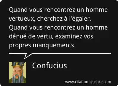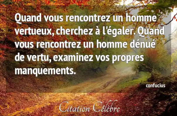 Quand vous rencontrez un homme vertueux, cherchez à l'égaler. Quand vous rencontrez un homme dénué de vertu, examinez vos propres manquements.