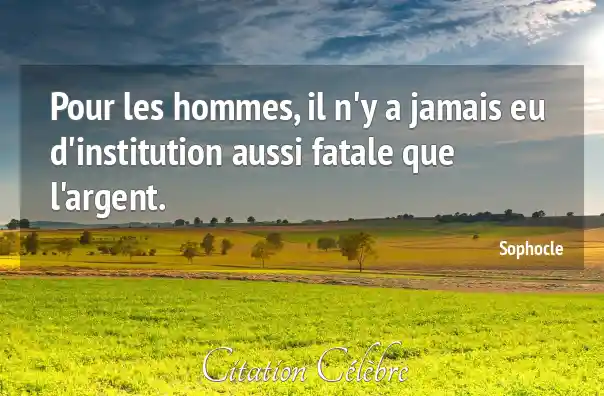 Pour les hommes, il n'y a jamais eu d'institution aussi fatale que l'argent.