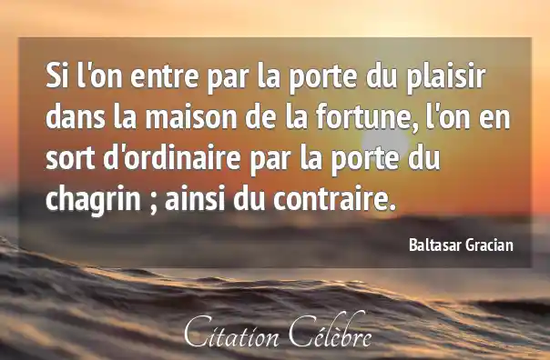 Si l'on entre par la porte du plaisir dans la maison de la fortune, l'on en sort d'ordinaire par la porte du chagrin ; ainsi du contraire.