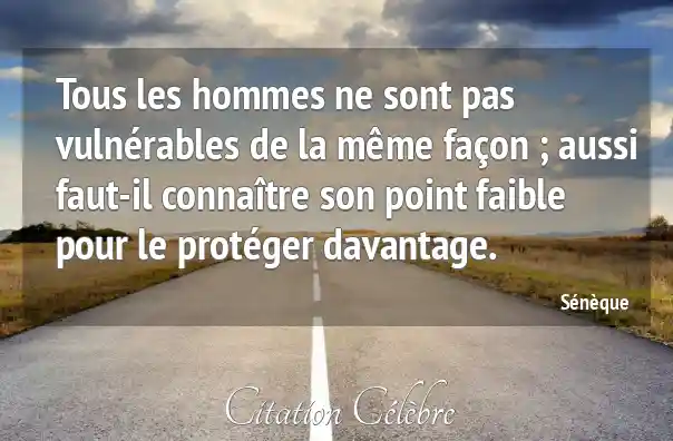 Tous les hommes ne sont pas vulnérables de la même façon ; aussi faut-il connaître son point faible pour le protéger davantage.
