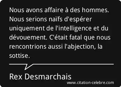 Nous avons affaire à des hommes. Nous serions naïfs d'espérer uniquement de l'intelligence et du dévouement. C'était fatal que nous rencontrions aussi l'abjection, la sottise.