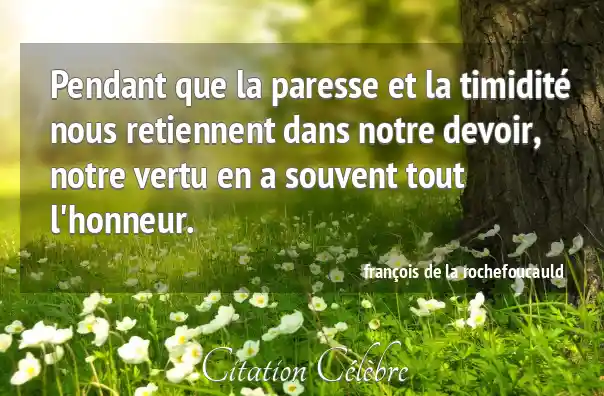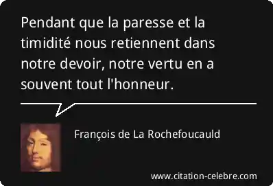 Pendant que la paresse et la timidité nous retiennent dans notre devoir, notre vertu en a souvent tout l'honneur.