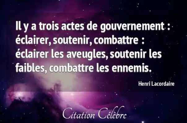 Il y a trois actes de gouvernement : éclairer, soutenir, combattre : éclairer les aveugles, soutenir les faibles, combattre les ennemis.