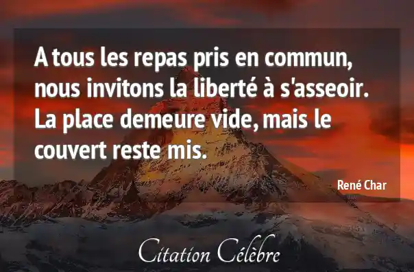 A tous les repas pris en commun, nous invitons la liberté à s'asseoir. La place demeure vide, mais le couvert reste mis.