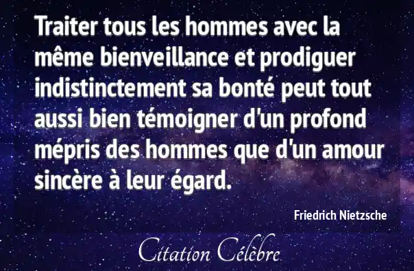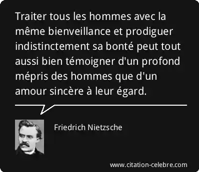Traiter tous les hommes avec la même bienveillance et prodiguer indistinctement sa bonté peut tout aussi bien témoigner d'un profond mépris des hommes que d'un amour sincère à leur égard.