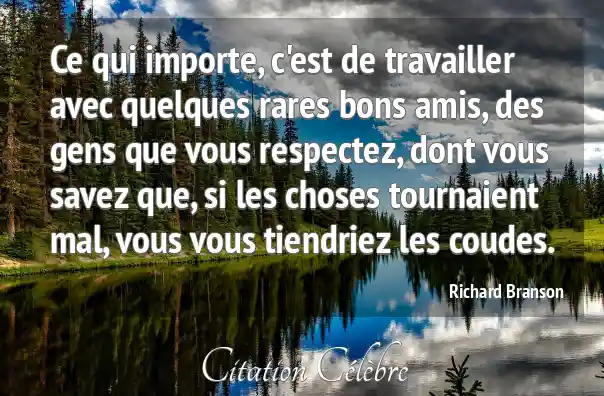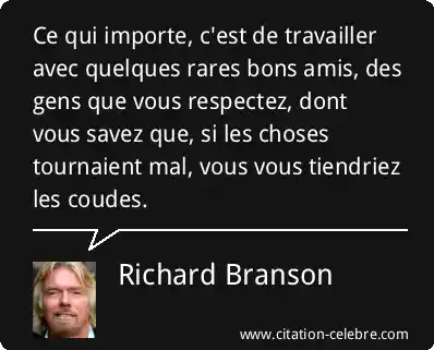 Ce qui importe, c'est de travailler avec quelques rares bons amis, des gens que vous respectez, dont vous savez que, si les choses tournaient mal, vous vous tiendriez les coudes.