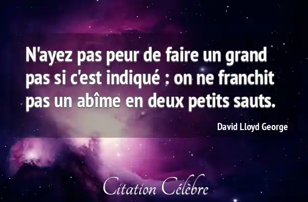 N'ayez pas peur de faire un grand pas si c'est indiqué : on ne franchit pas un abîme en deux petits sauts.