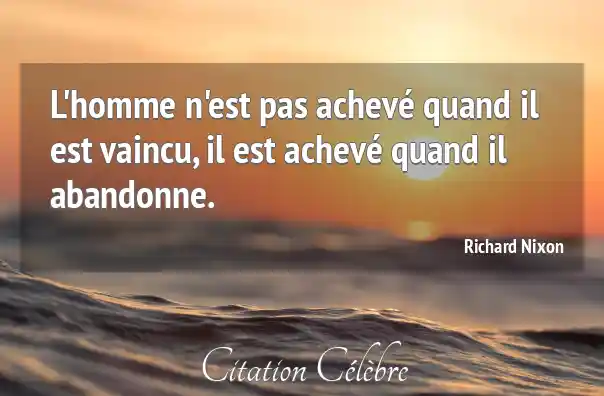 L'homme n'est pas achevé quand il est vaincu, il est achevé quand il abandonne.