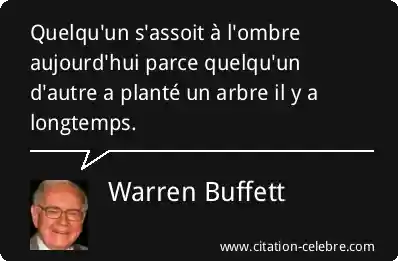 Quelqu'un s'assoit à l'ombre aujourd'hui parce quelqu'un d'autre a planté un arbre il y a longtemps.