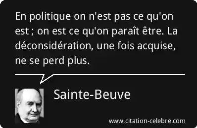 En politique on n'est pas ce qu'on est ; on est ce qu'on paraît être. La déconsidération, une fois acquise, ne se perd plus.