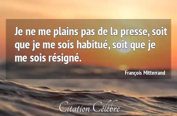 Je ne me plains pas de la presse, soit que je me sois habitué, soit que je me sois résigné.
