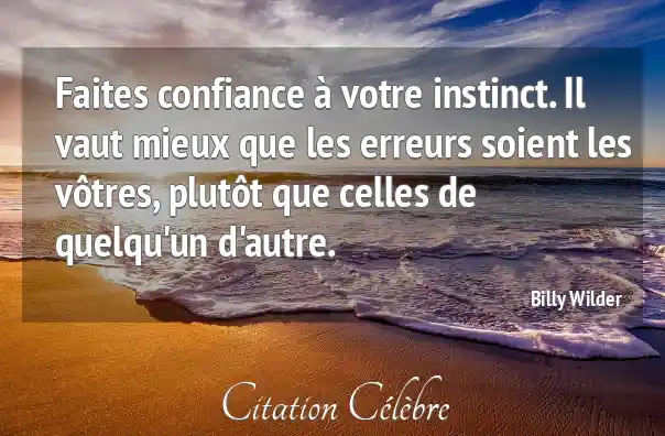 Faites confiance à votre instinct. Il vaut mieux que les erreurs soient les vôtres, plutôt que celles de quelqu'un d'autre.