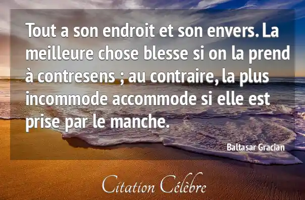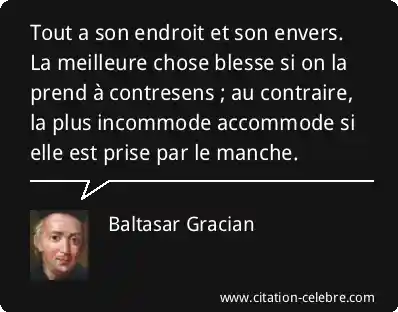 Tout a son endroit et son envers. La meilleure chose blesse si on la prend à contresens ; au contraire, la plus incommode accommode si elle est prise par le manche.