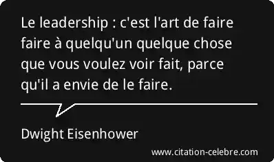 Le leadership : c'est l'art de faire faire à quelqu'un quelque chose que vous voulez voir fait, parce qu'il a envie de le faire.