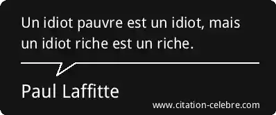 Un idiot pauvre est un idiot, mais un idiot riche est un riche.