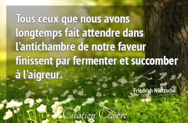 Tous ceux que nous avons longtemps fait attendre dans l'antichambre de notre faveur finissent par fermenter et succomber à l'aigreur.