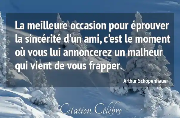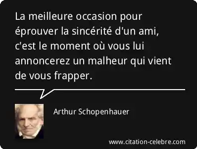 Citation Arthur Schopenhauer lui : La meilleure occasion pour éprouver la sincérité d'un ami, c'est...