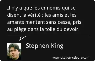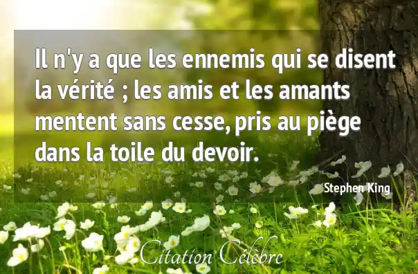 Il n'y a que les ennemis qui se disent la vérité ; les amis et les amants mentent sans cesse, pris au piège dans la toile du devoir.