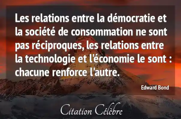 Les relations entre la démocratie et la société de consommation ne sont pas réciproques, les relations entre la technologie et l'économie le sont : chacune renforce l'autre.