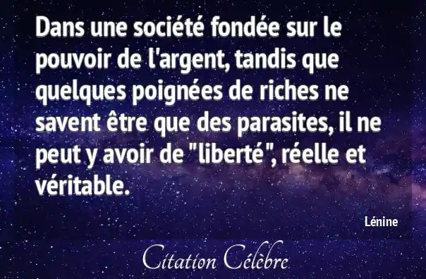 Dans une société fondée sur le pouvoir de l'argent, tandis que quelques poignées de riches ne savent être que des parasites, il ne peut y avoir de "liberté", réelle et véritable.