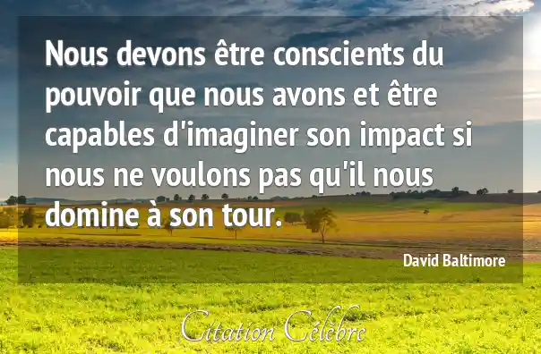Nous devons être conscients du pouvoir que nous avons et être capables d'imaginer son impact si nous ne voulons pas qu'il nous domine à son tour.