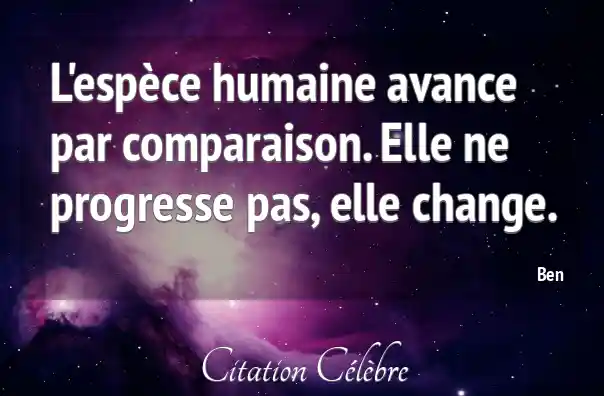 L'espèce humaine avance par comparaison. Elle ne progresse pas, elle change.